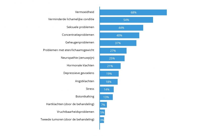 We concluderen dat het grootste deel van de (ex-)kankerpatiënten last ondervindt van ‘late gevolgen’, deze zijn divers van aard. Het is belangrijk dat zowel zorgverleners als patiënten zich bewust zijn van de kans op ‘late gevolgen’, zodat problemen op tijd worden gesignaleerd en waar nodig wordt verwezen naar gespecialiseerde zorg.